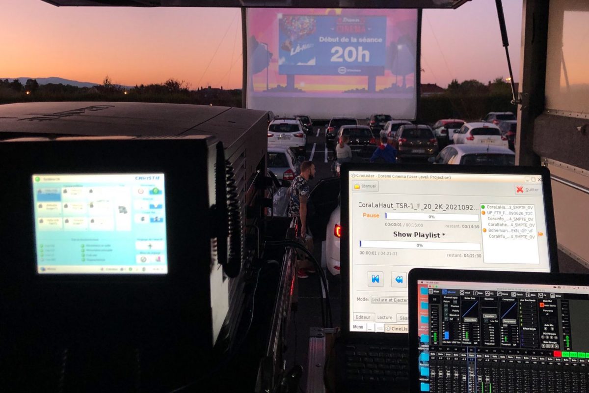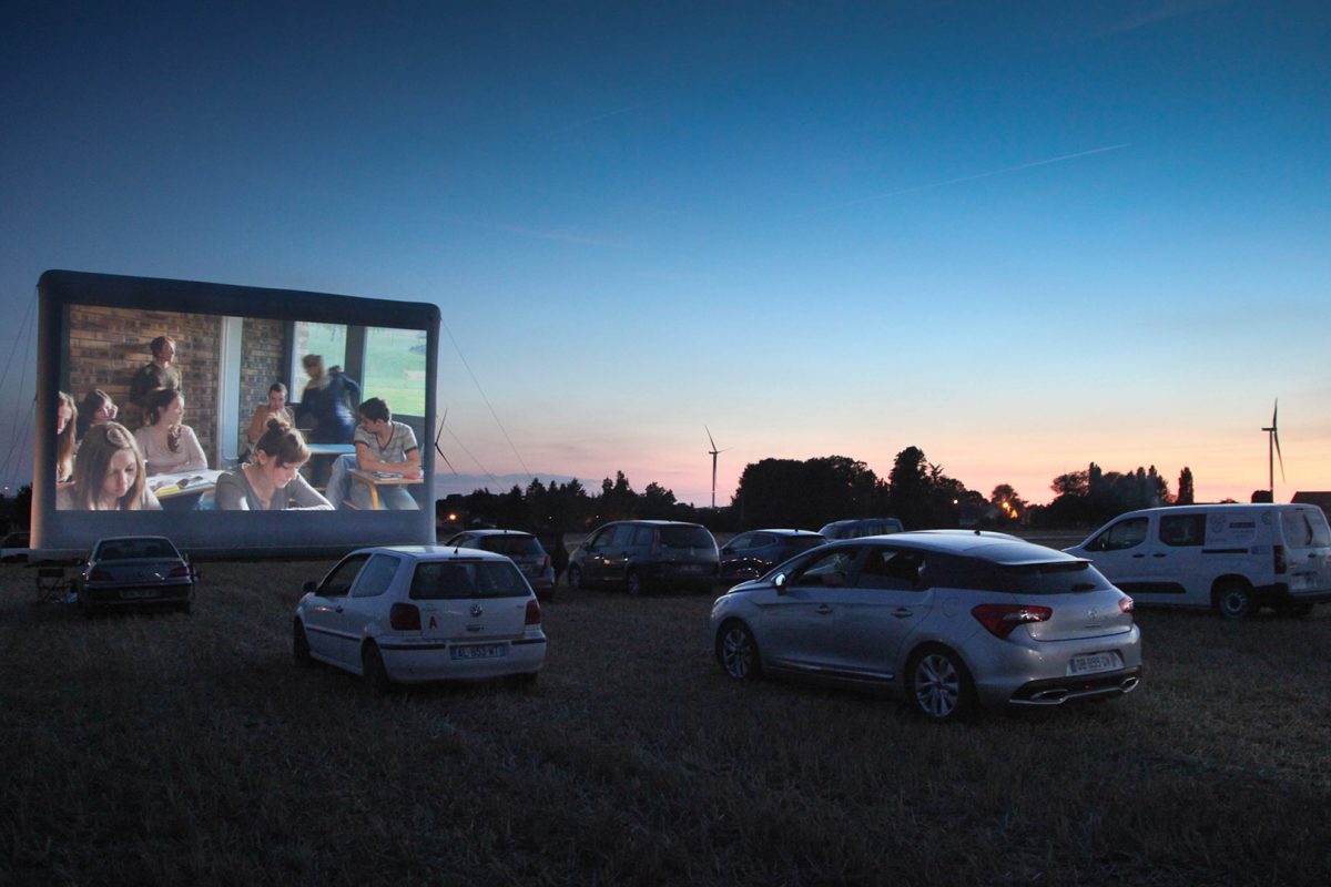Une séance de cinéma sur grand écran dans sa voiture.