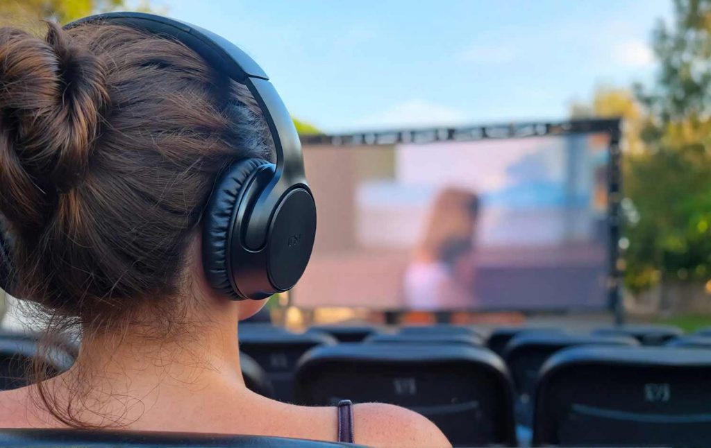 Avec Silent Cinema, votre événement devient invisible pour l'écosystème. Le son reste confiné dans les casques de vos spectateurs. La forêt garde son silence. La magie du lieu reste intacte.
